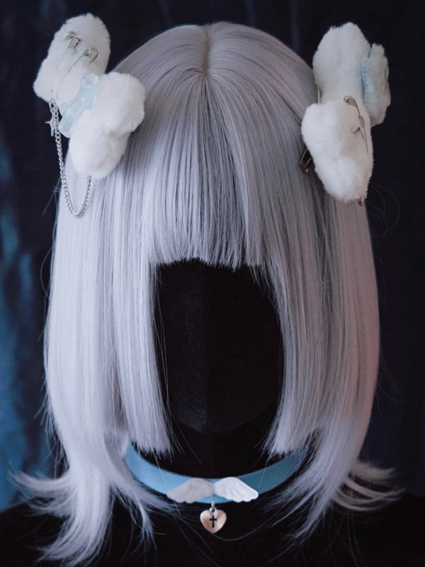 2 Options Star Charm Handmade White Plush Bone Hairclip with Chain
