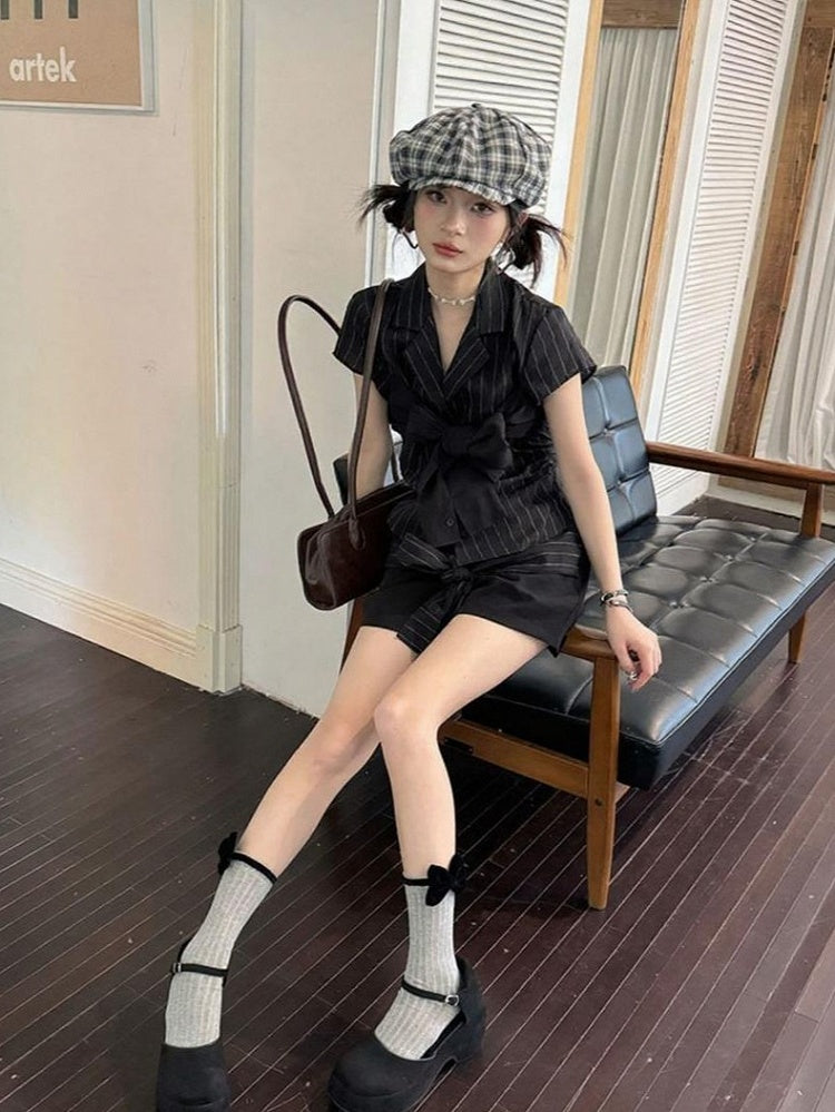 Add a touch of playful charm to your wardrobe with these socks, available in three color combinations. Featuring a black bow at the cuff. Ideal for both everyday wear and sweet, kawaii-inspired fashion.