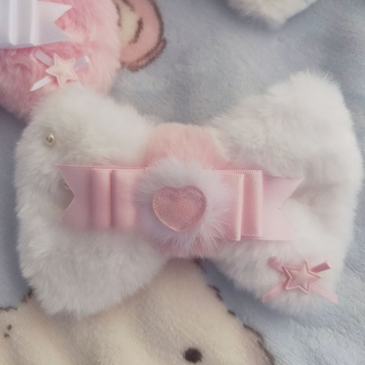 3 Color Options Star Decorated Plush Bowknot Hairclip