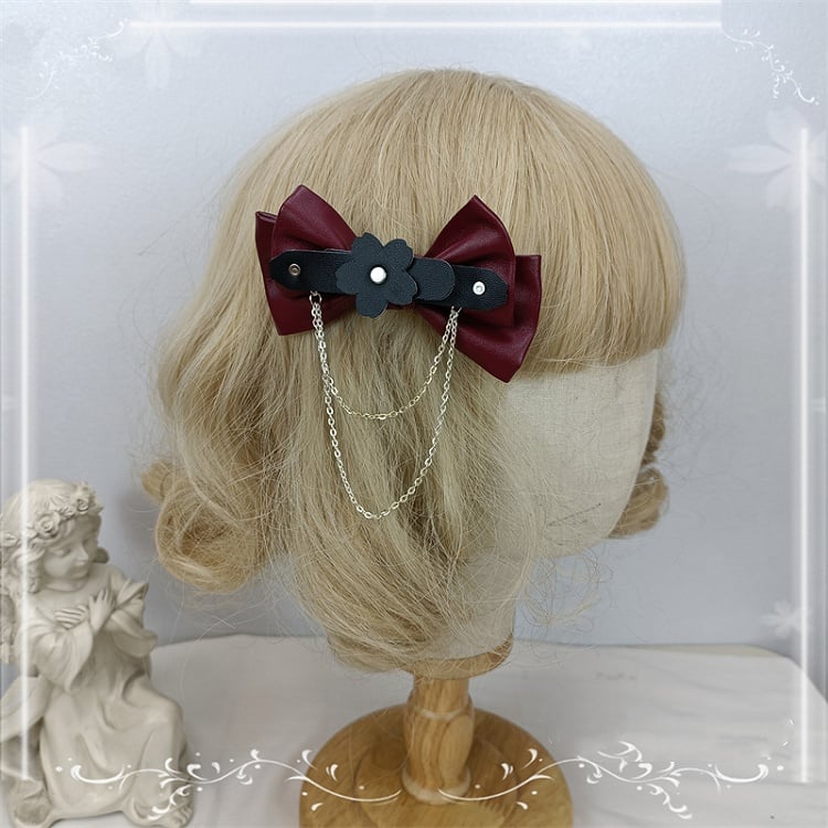 4 Color Options Detachable Chain Bow PU Hairclips