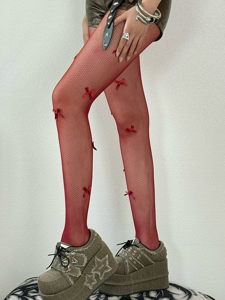 5 Color Options Gyaru Fashion Bowknot Details Tights