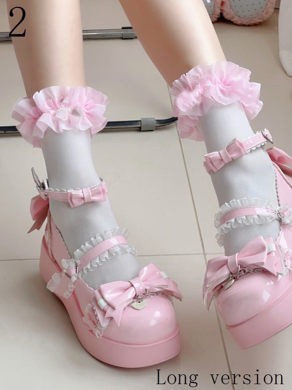 9 Options Black/White Lace Ruffled Cuffs Calf Socks With Pearls
