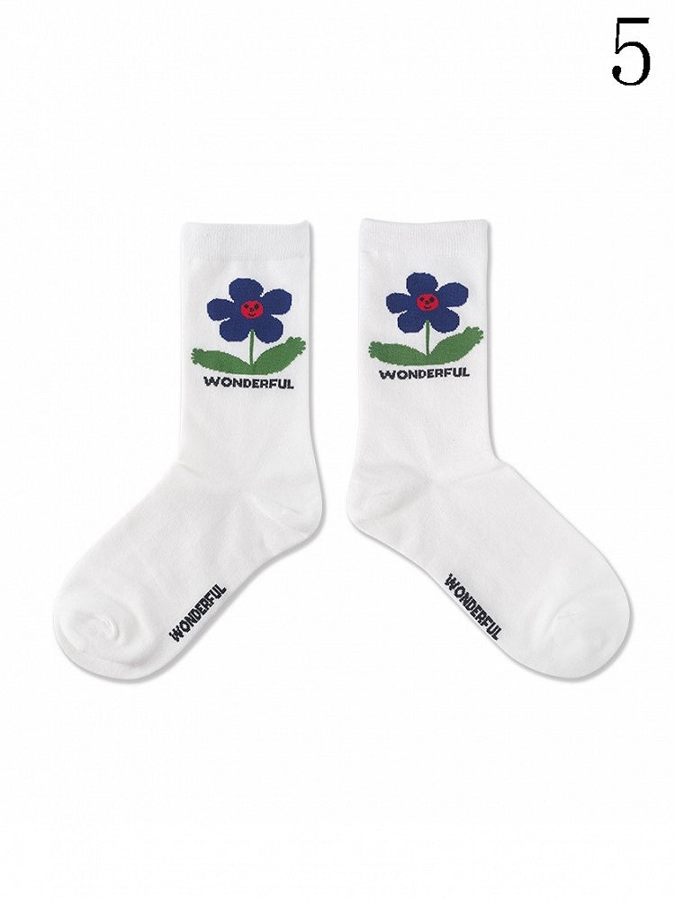 9 Options Colorful Kitty/Puppy/Bear Print Striped Pattern Calf Socks