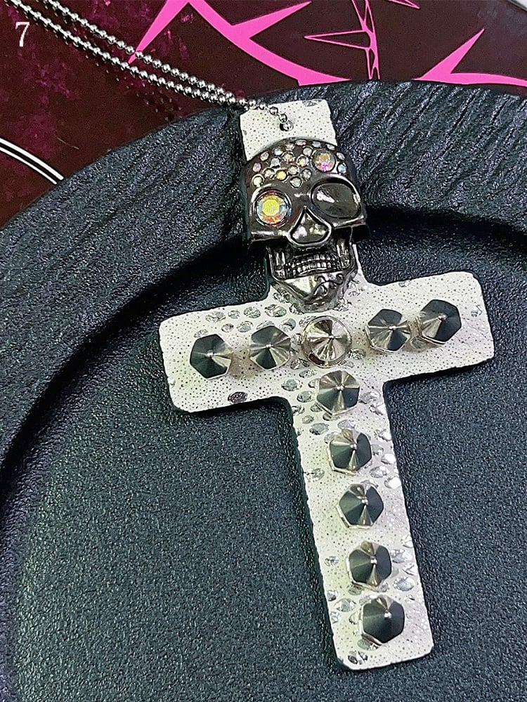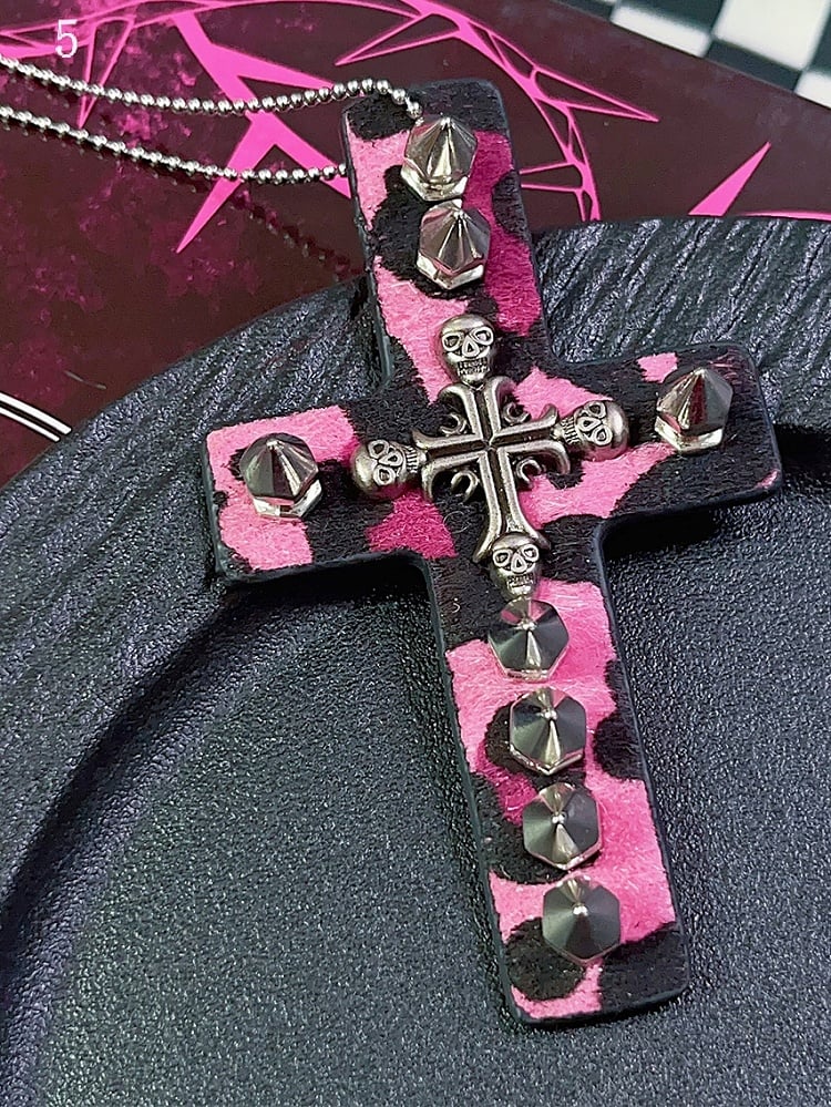9 Options Gyaru Fashion Skeleton And Studs Leopard Cross Necklace