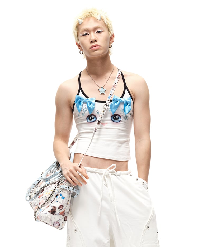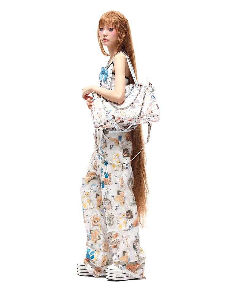 Embrace your love for all things cute with this delightful white tote bag featuring allover kitty print. This adorable accessory is perfect for adding a touch of whimsy to any outfit. Designed with multiple shoulder straps, it offers versatility and comfort, allowing you to switch up your style effortlessly.