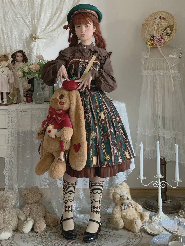 Accessories (for both version A and B): a beret, a cape, an embroidered bowknot and the small oil painting plate bag.