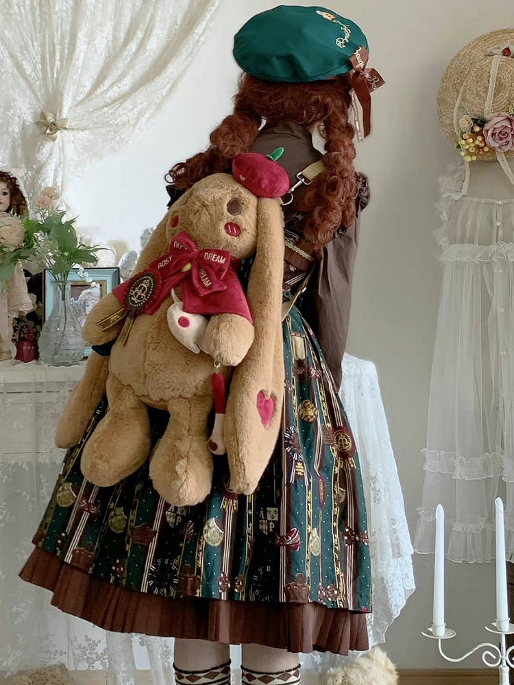 Apple Pie Little Painter Plush Bunny Bag Brown and Red