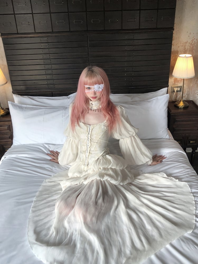 This whimsical ankle-length skirt features flowing tiers. An intricately ruffled hem adds playful movement. Pure apricot hue complements any top effortlessly. Blends kawaii charm with elegant sophistication. Versatile for both casual and formal occasions.