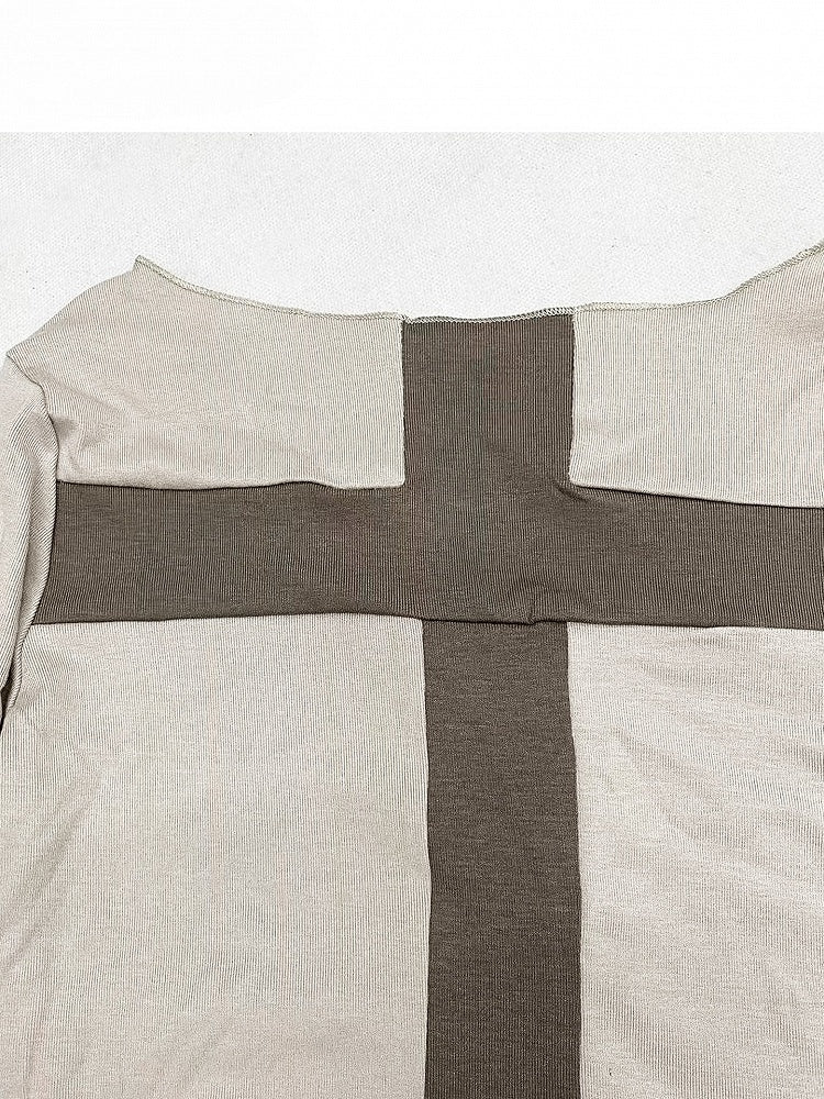 Embrace a bold and edgy aesthetic with this apricot-toned long sleeve top, crafted for those who love to stand out. Featuring an unconventional irregular neckline that adds a unique twist to your ensemble, this top is perfect for making a statement. The cross design accentuates the piece with a touch of rebellious charm, making it an ideal choice for those who adore the Y2K fashion revival. Whether paired with your favorite jeans or a chic skirt, this top is sure to elevate your style game.