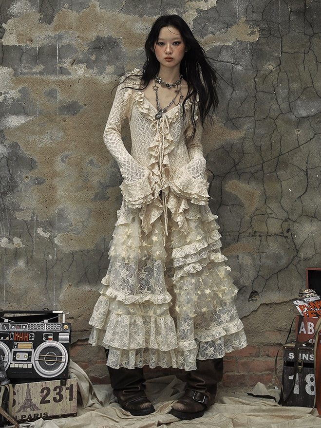 Embrace timeless elegance with this exquisite apricot top, designed to captivate with its vintage-inspired charm. The alluring V-neckline offers a touch of sophistication, gracefully accentuating your neckline. Delicate ruffles cascade down the front, adding a whimsical flair. The bell sleeves are a standout feature, creating a soft, flowing silhouette that moves beautifully with every gesture. The self-tie straps are for a customizable fit, ensuring comfort and style in one.