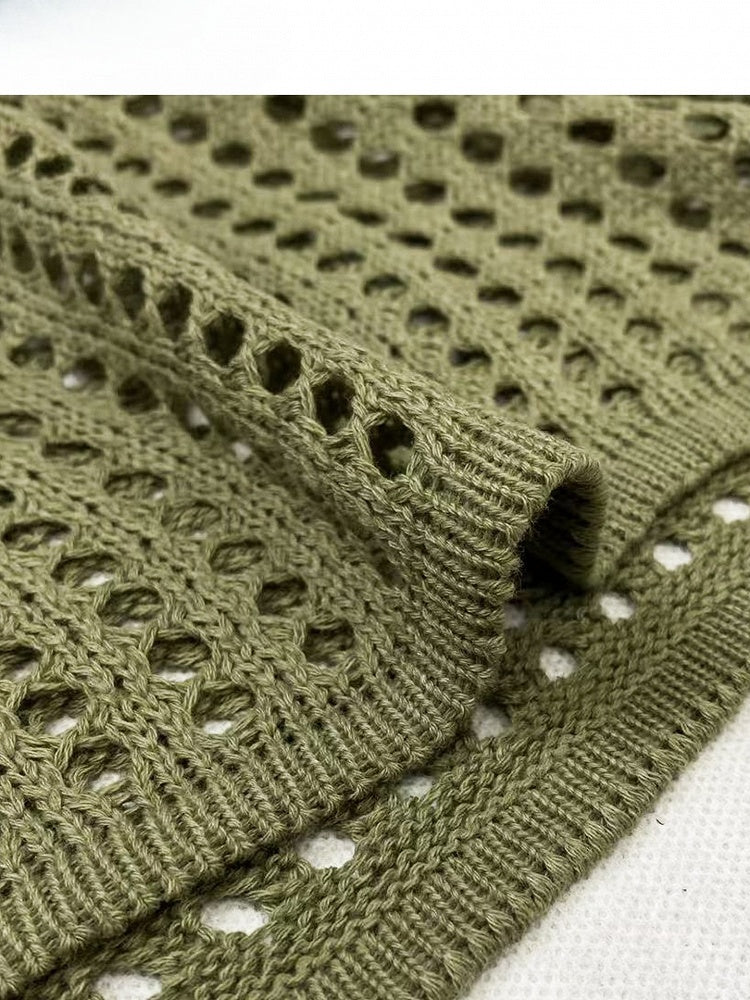 Army Green Hollow-out Design Semi-sheer Long Sleeves Top