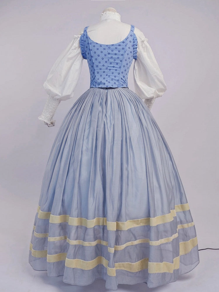 Bavarian Landhaus Historical Costume - Light Blue Boned Corset + Skirt + White Shirt + White Lace Bonnet