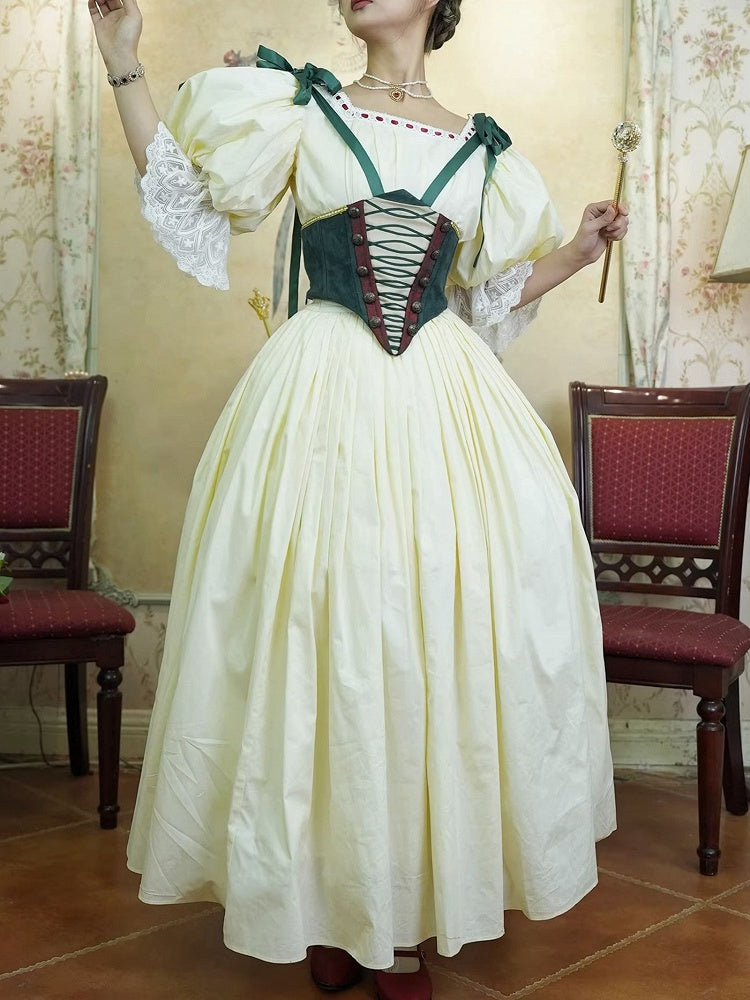 Bavarian Landhaus Historical Costume - Light Yellow Boned Bodice Top + Skirt + Corset Belt