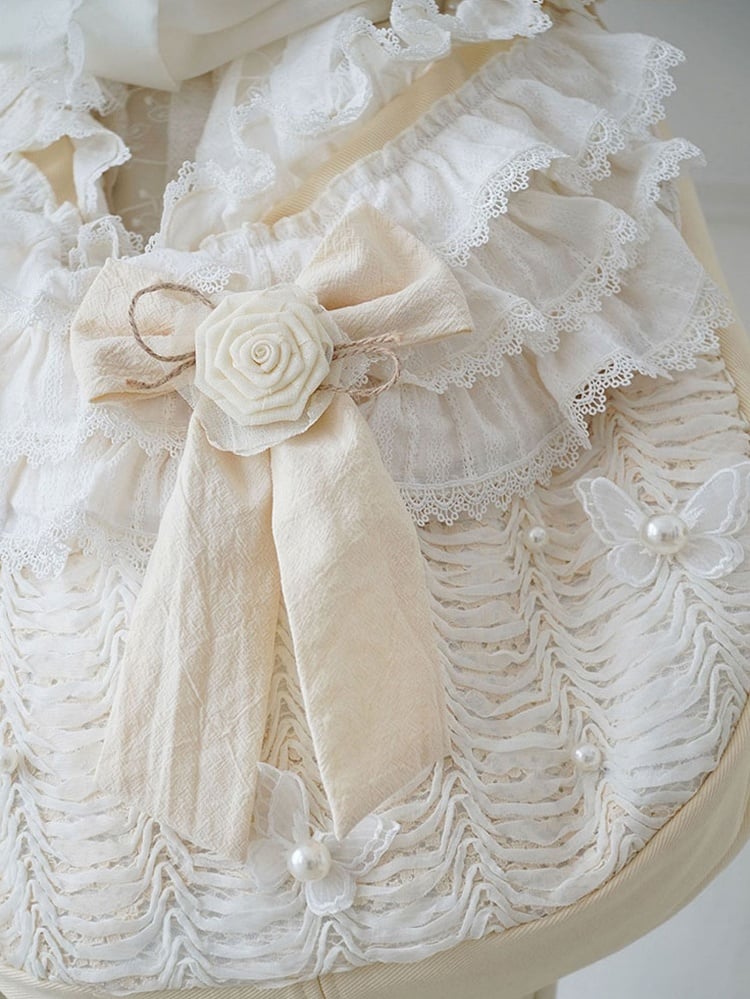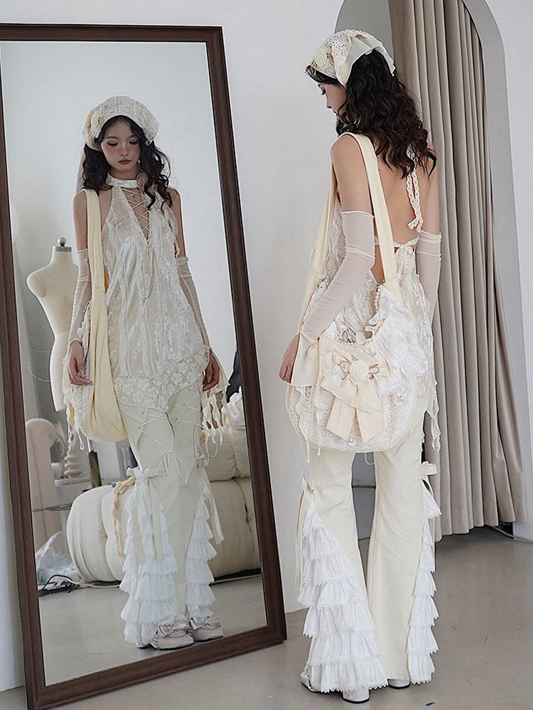 Add a touch of whimsy to your outfit with our bead and butterfly details crossbody. This charming beige bag features delicate bowknot and flower embellishments, adding a sweet and feminine touch to your look. Made from durable canvas fabric, it boasts a spacious interior, perfect for carrying all your essentials. The ruffle trim adds a playful and stylish element to the design.