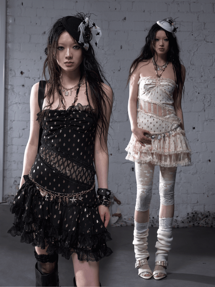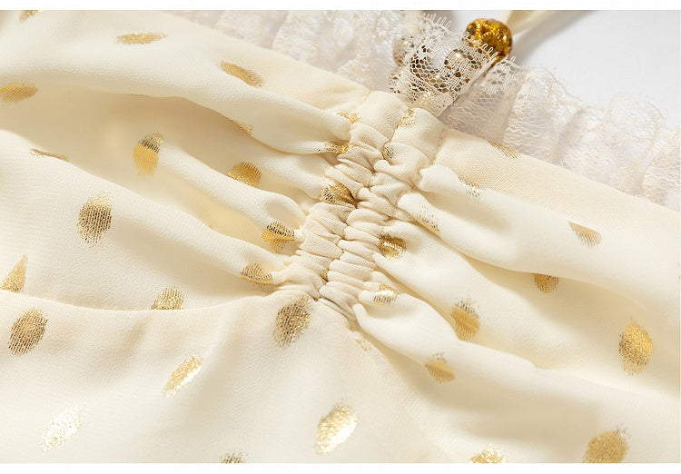 Embrace a playful yet elegant style with this chic halter dress, featuring a delightful polka-dot pattern. The intricate lace patches add a touch of sophistication, making it perfect for both casual outings and special occasions.