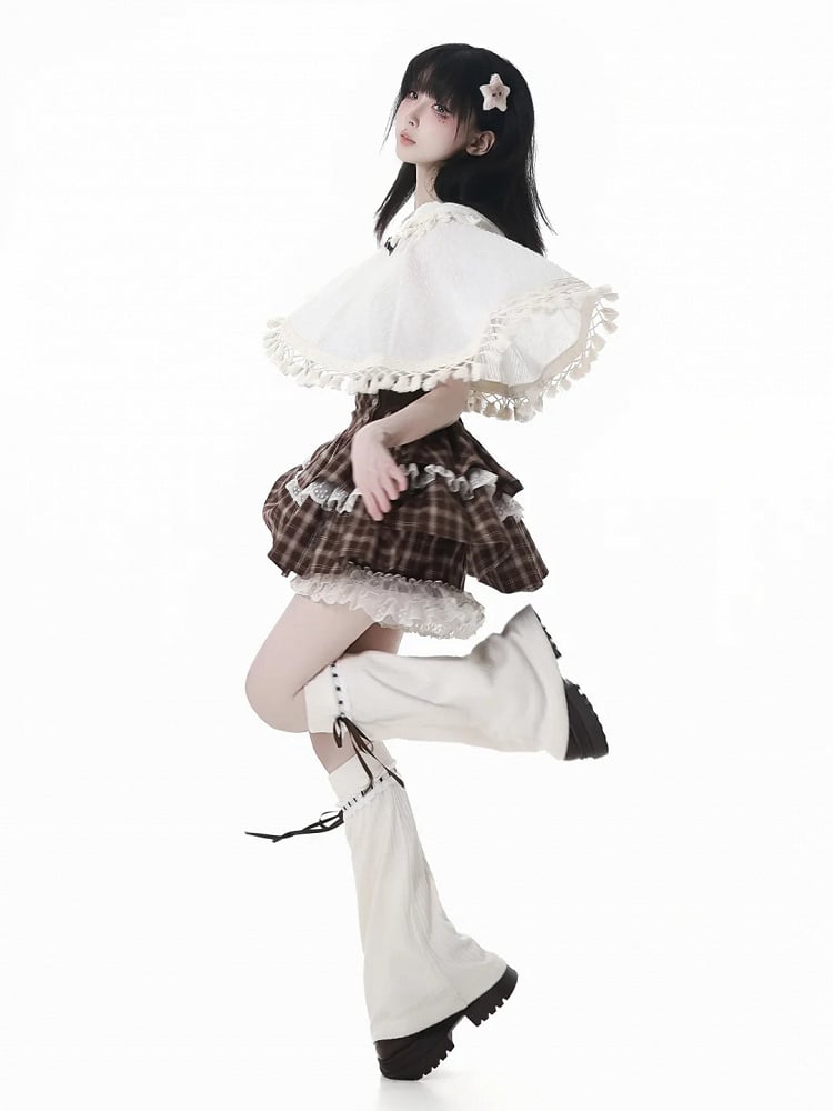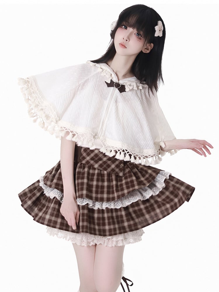 Beige Bohemian Tassel Hem Zip-up Cape with Cami Top Set