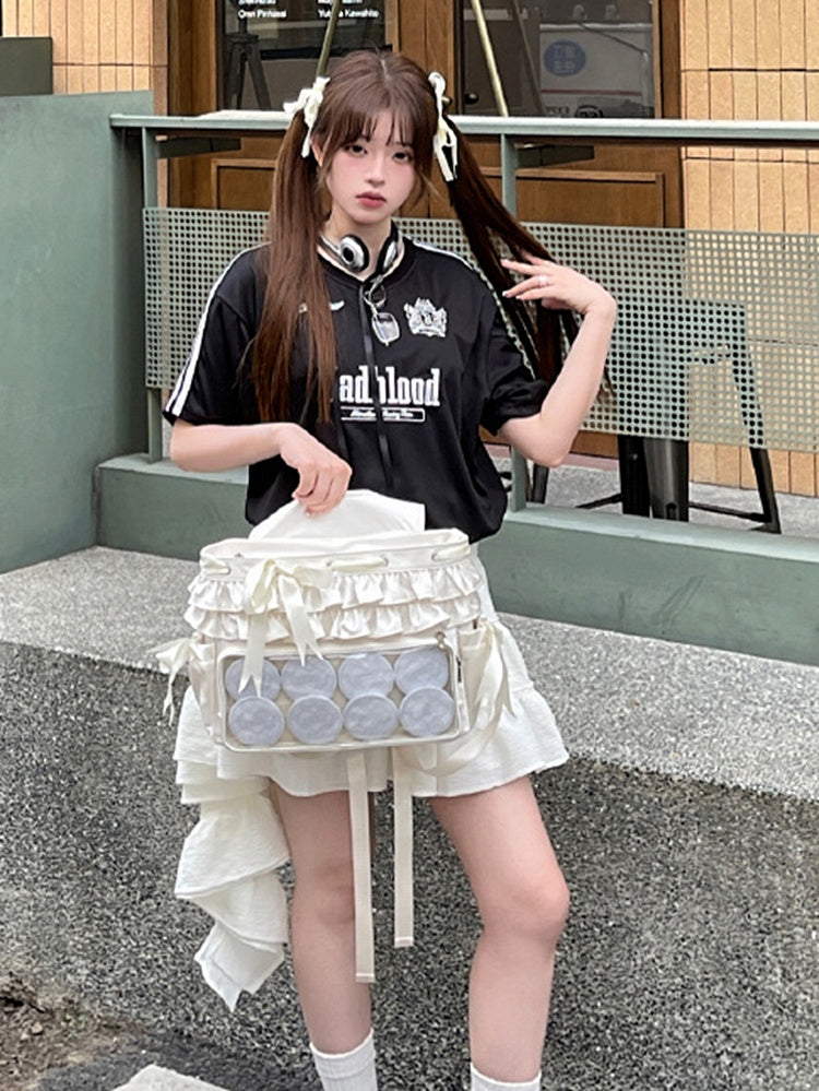 Introducing our charmingbackpack, a perfect blend of functionality and style for those who adore the Lolita and Kawaii aesthetic. This delightful backpack features a secure zipper closure to keep your essentials safe and accessible. The standout design element is the enchanting double-layered ruffle edges that add a touch of whimsy and elegance to your look. Additionally, a dainty bow accent adorns the backpack, enhancing its cute and playful character.Ideal for anyone looking to add a dash of cuteness to their everyday ensemble.