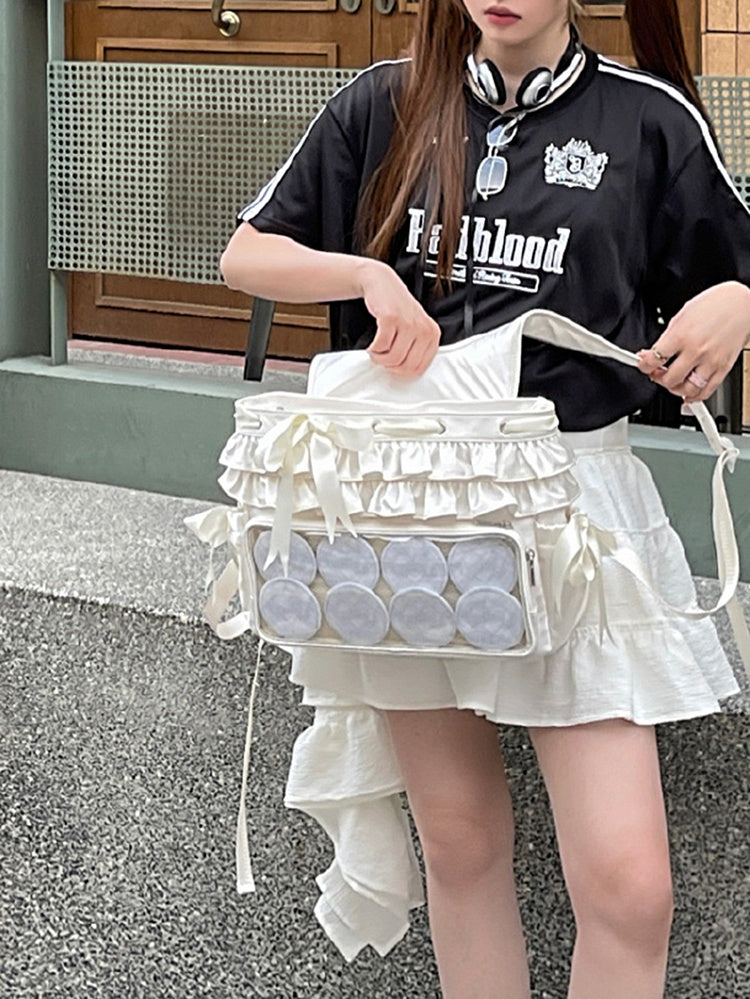 Beige Ruffle Trim Bow Accents Balletcore Ita Backpack