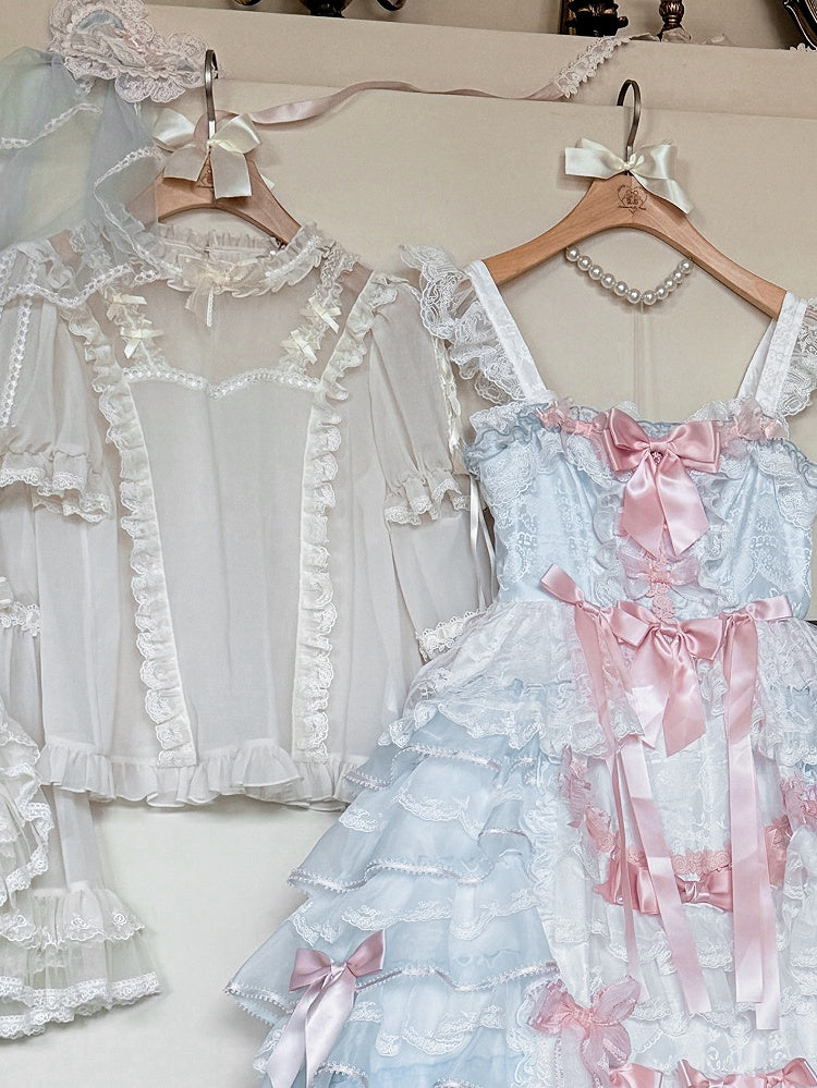 Beige Short Sleeves Blouse with Detachable Bell Sleeves