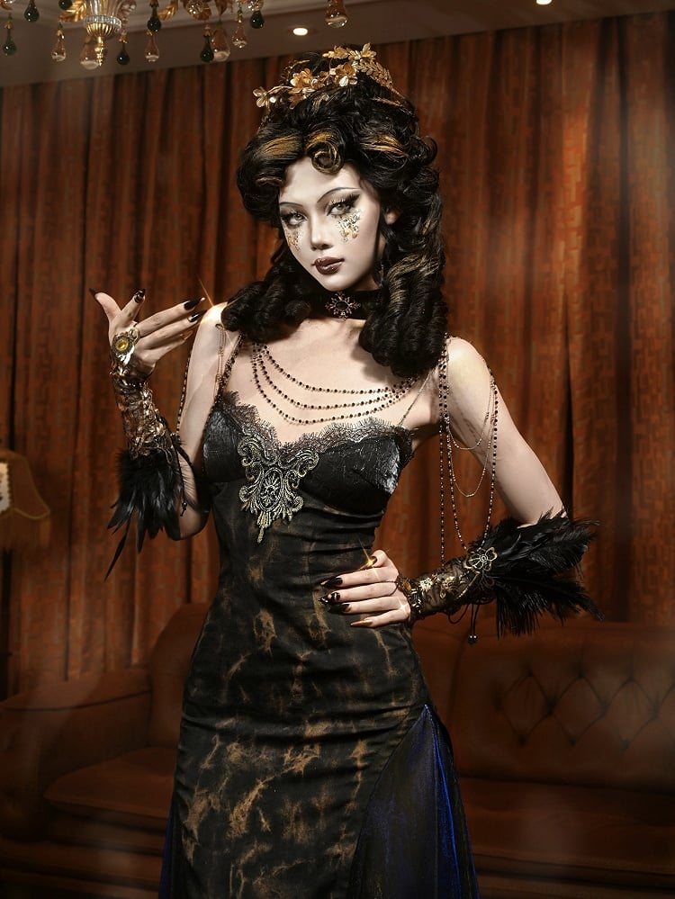 Elevate your wardrobe with this stunning black and gold V-neck slip dress. Designed to enhance your silhouette, this dress features a slimming fit that complements any body type. The adjustable shoulder straps ensure a perfect fit, while the built-in bra pads provide added comfort and support. Perfect for a night out or a special occasion, this dress combines elegance and functionality effortlessly.