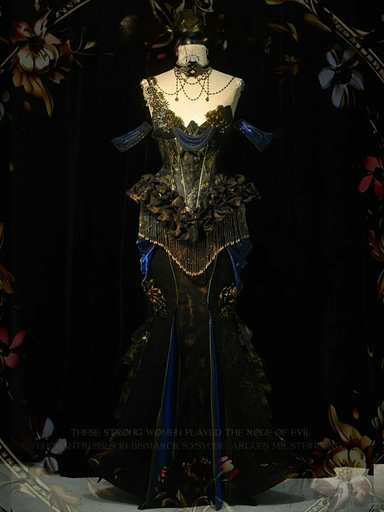 The skirt comes adorned with removable roses pin and a delicate bead chain, allowing you to customize your look effortlessly. These exquisite embellishments add a romantic and ethereal charm to the ensemble, making it perfect for gothic events, themed parties, or simply to make a bold fashion statement.