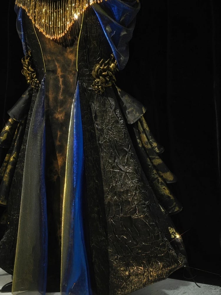 Immerse yourself in the allure of Victorian gothic elegance with our Black and Gold Victorian Goth Mermaid Skirt. This enchanting skirt features a dramatic mermaid silhouette that hugs your curves and flares out gracefully at the hem, creating a timeless and sophisticated look. The luxurious black fabric is accented with intricate gold detailing, adding a touch of opulence and mystery.