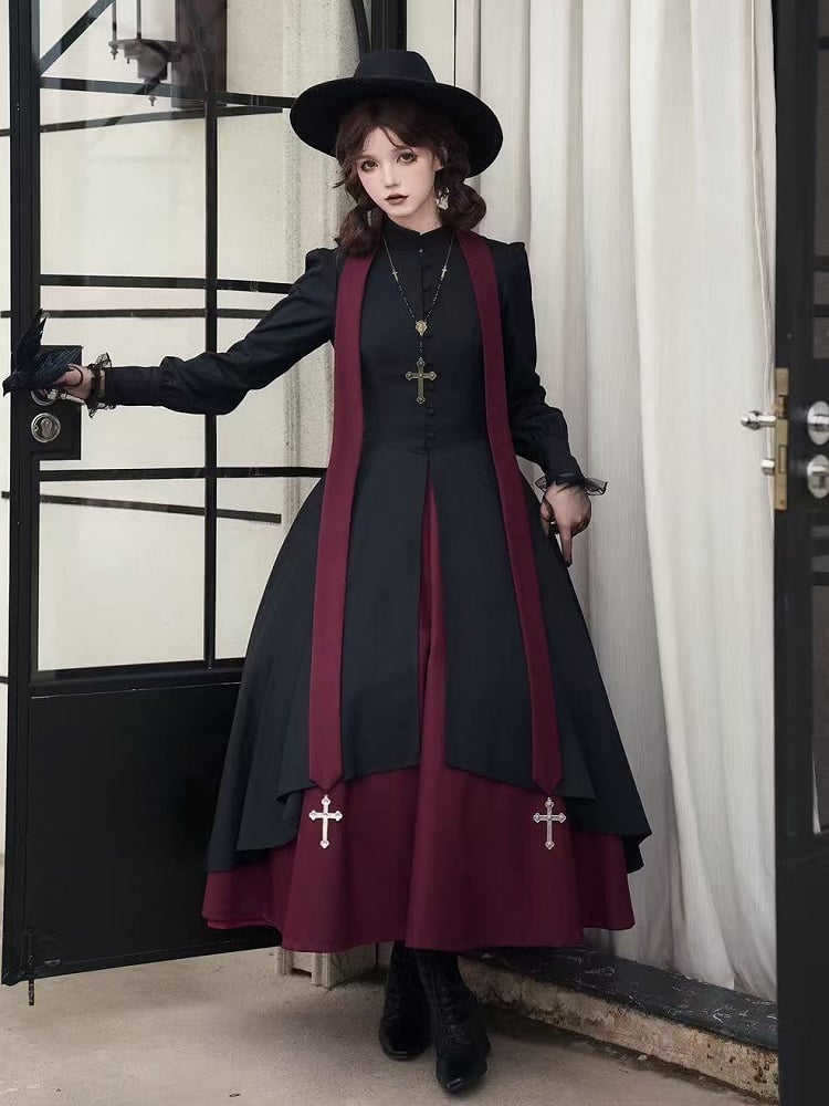 Black and Red Nun Lolita Long Sleeves Dress