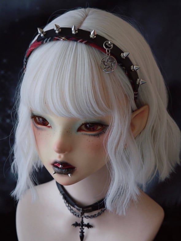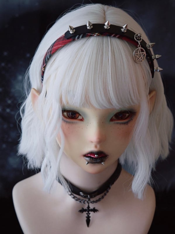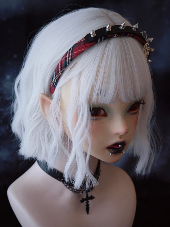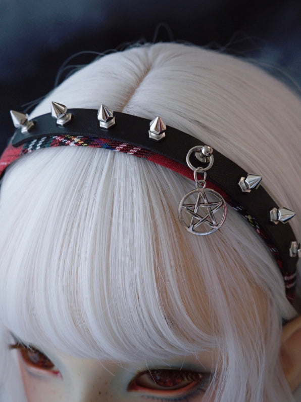 Black And Red Plaid Pattern With Studs And Pentagram Charm Design KC