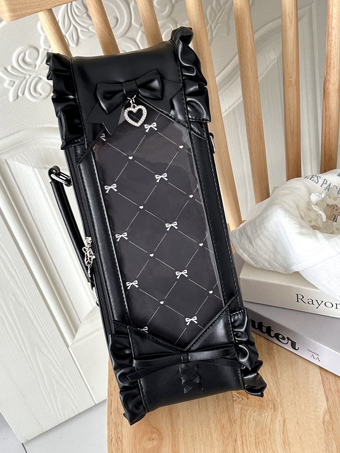 Black Bowknot Details Diamond Pattern 1/6 Scale BJD Doll Bag with Two Straps