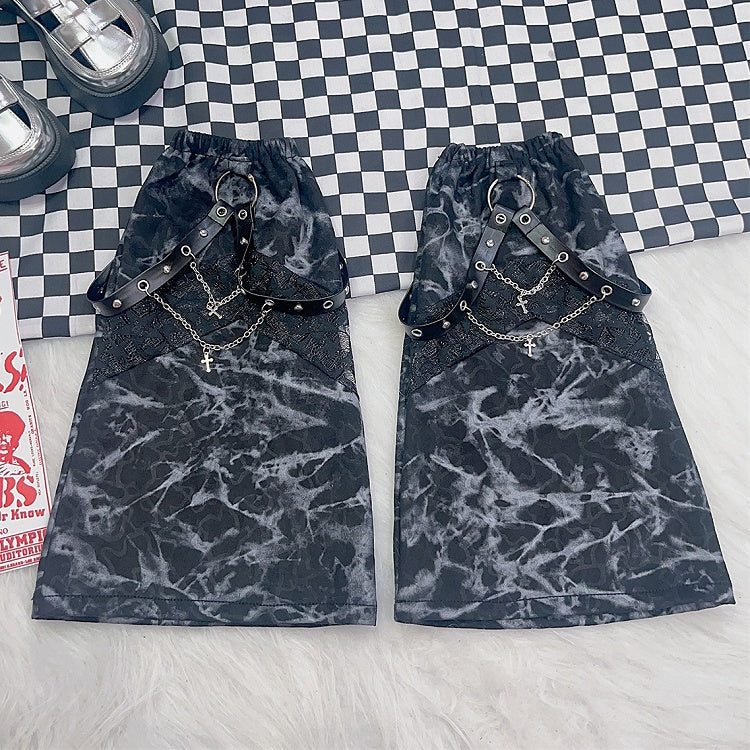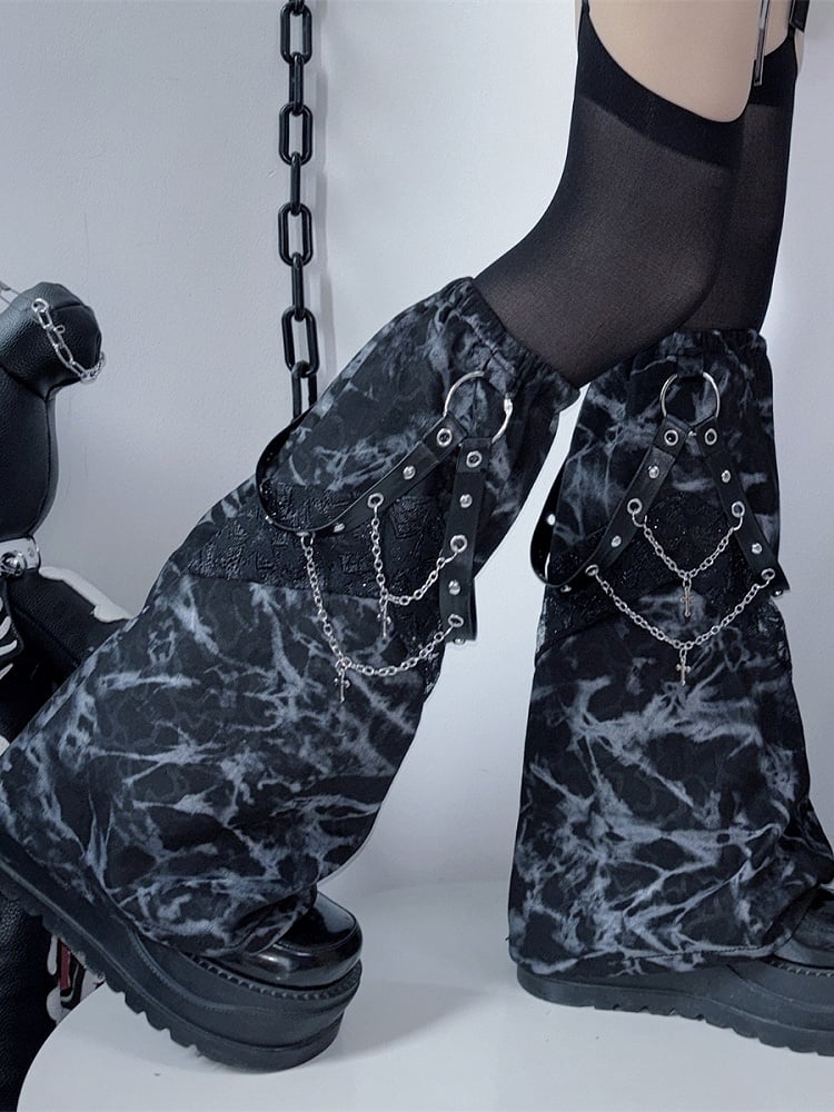 Black/Brown Wasteland Punk Cross Charm Tie Dye Design Leg Warmers