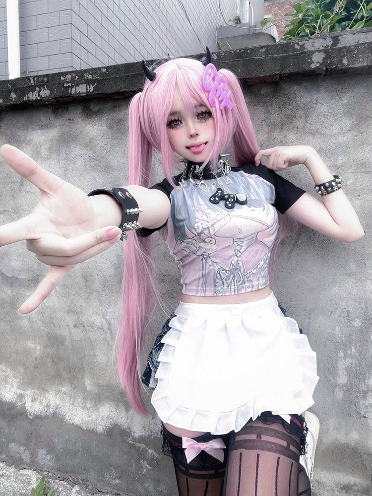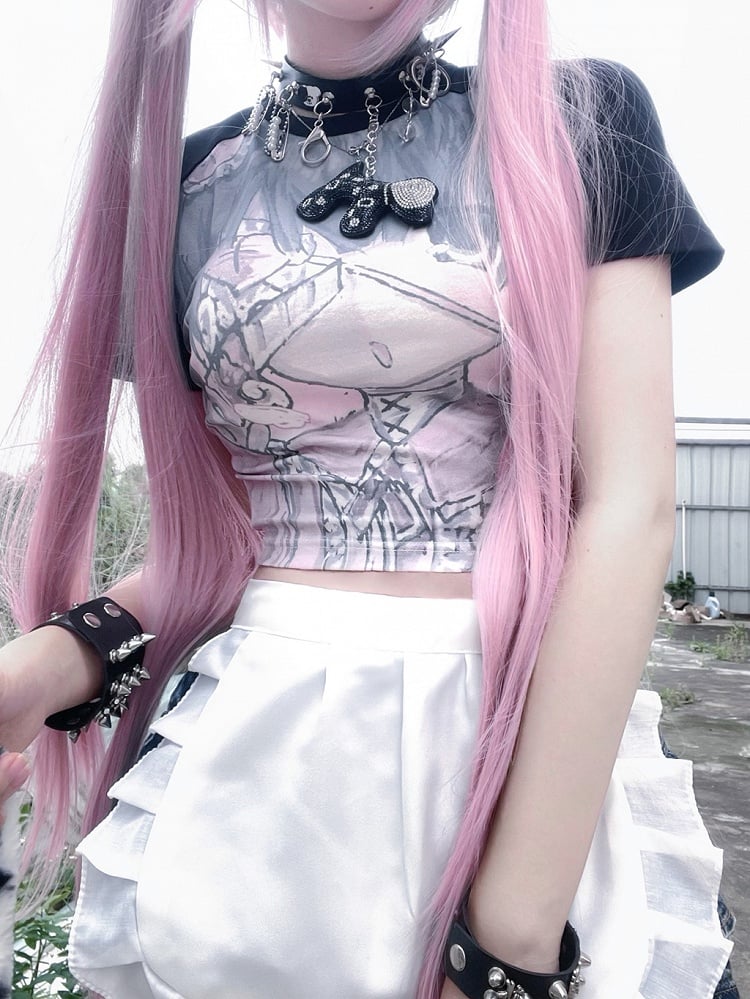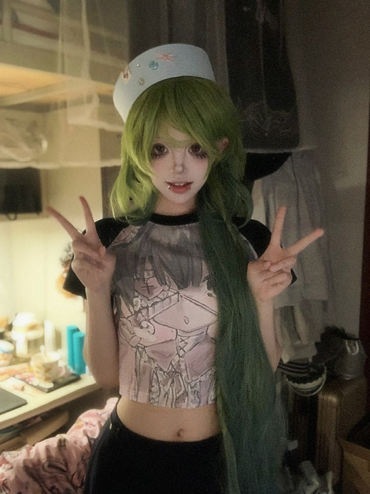 This top features a color-block design and is adorned with a painting pattern. It is a cropped top that sits perfectly at the narrowest part of the waist, making it very slimming. Elevate your wardrobe with this chic Color-Block Cropped Top, artfully adorned with a unique painting pattern. Designed to sit perfectly at the narrowest part of your waist, this top not only accentuates your figure but also offers a flattering, slimming effect. Perfect for pairing with high-waisted jeans or skirts, this stylish piece is a must-have for any fashion-forward individual.