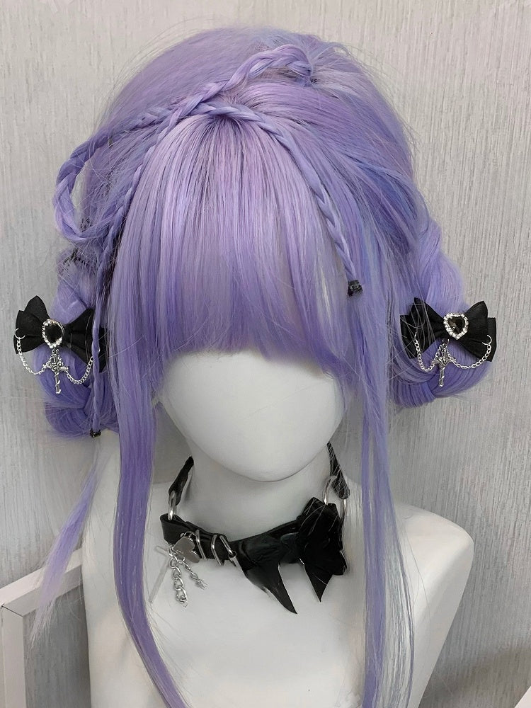 Black/Champagne/Pink Cross Charm Rhinestone Heart Decorated Bowknot Hairclips