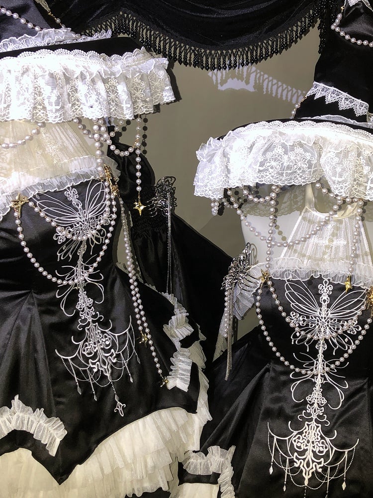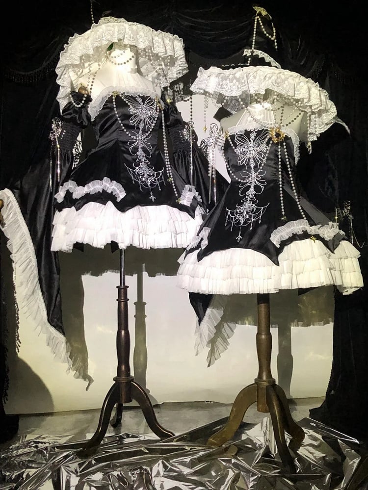 Black Cross Illusion Halter Neck Witch Lolita Backless Dress Gothic JSK Halloween Outfit