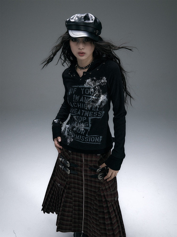 Elevate your style with this chic black faux two-piece top, featuring a trendy letter print that adds an edgy flair to your ensemble. The V-neck design enhances your neckline, creating a flattering silhouette that pairs effortlessly with both casual and dressy outfits. Perfect for those who love mixing comfort with fashion-forward elements, this top is a versatile addition to any wardrobe.