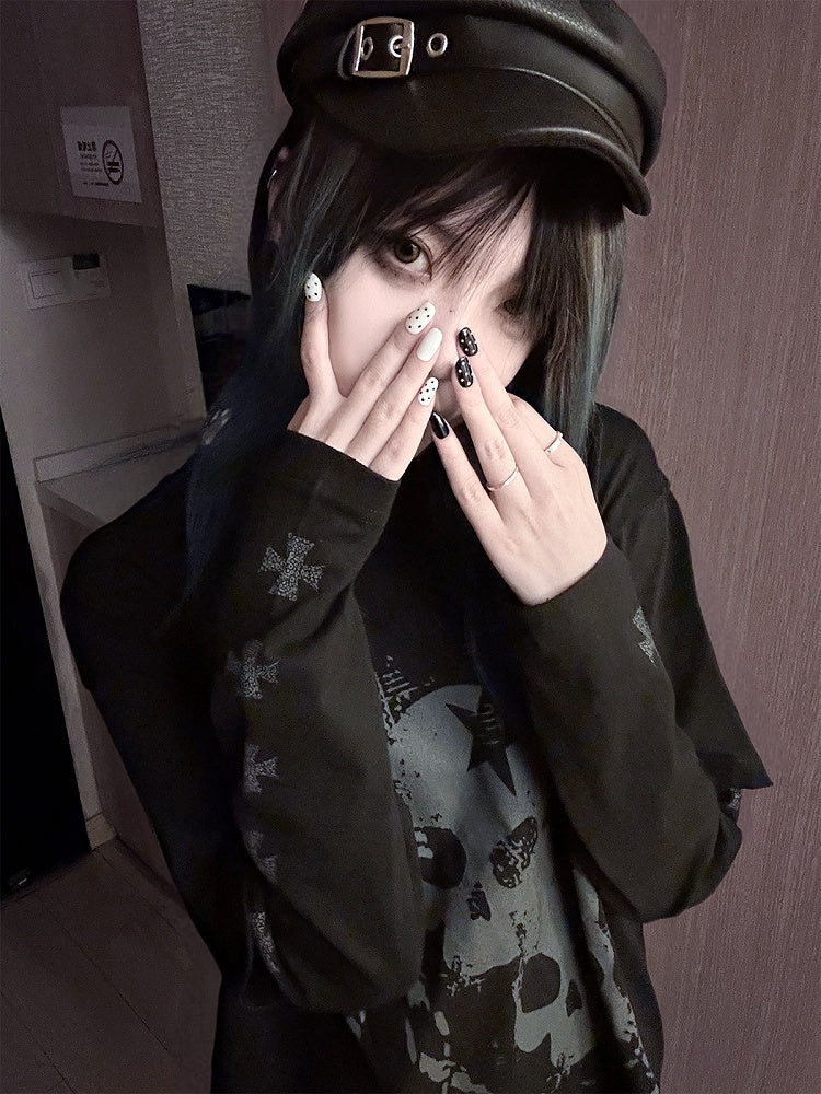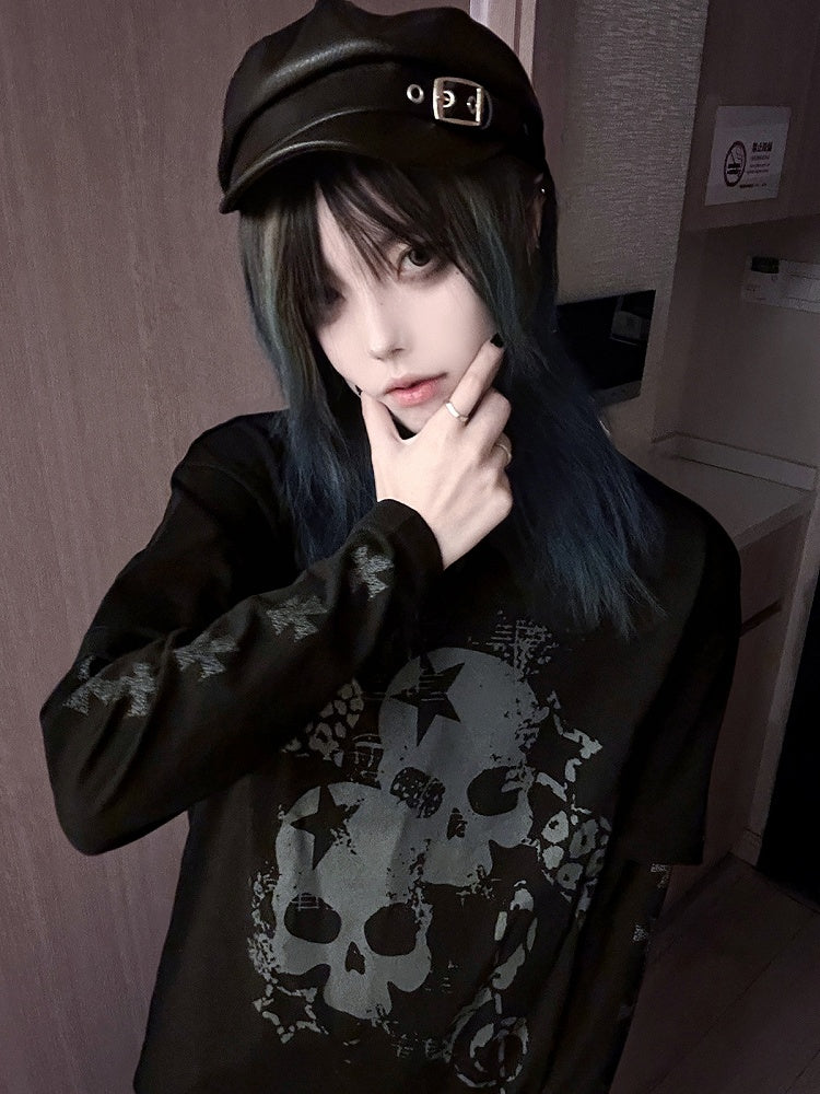 Elevate your style with this Black Long Sleeve Top featuring a striking white skeleton print. Designed for a relaxed fit, this top combines comfort with a bold aesthetic, making it perfect for those who love to make a statement.