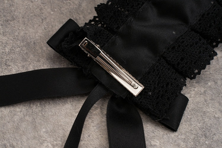 Add a touch of dark elegance to your look with our handmade bunny ears hairband. This hairband features intricately crafted bowknots with bunny ears accents, perfect for adding a gothic twist to your outfit.