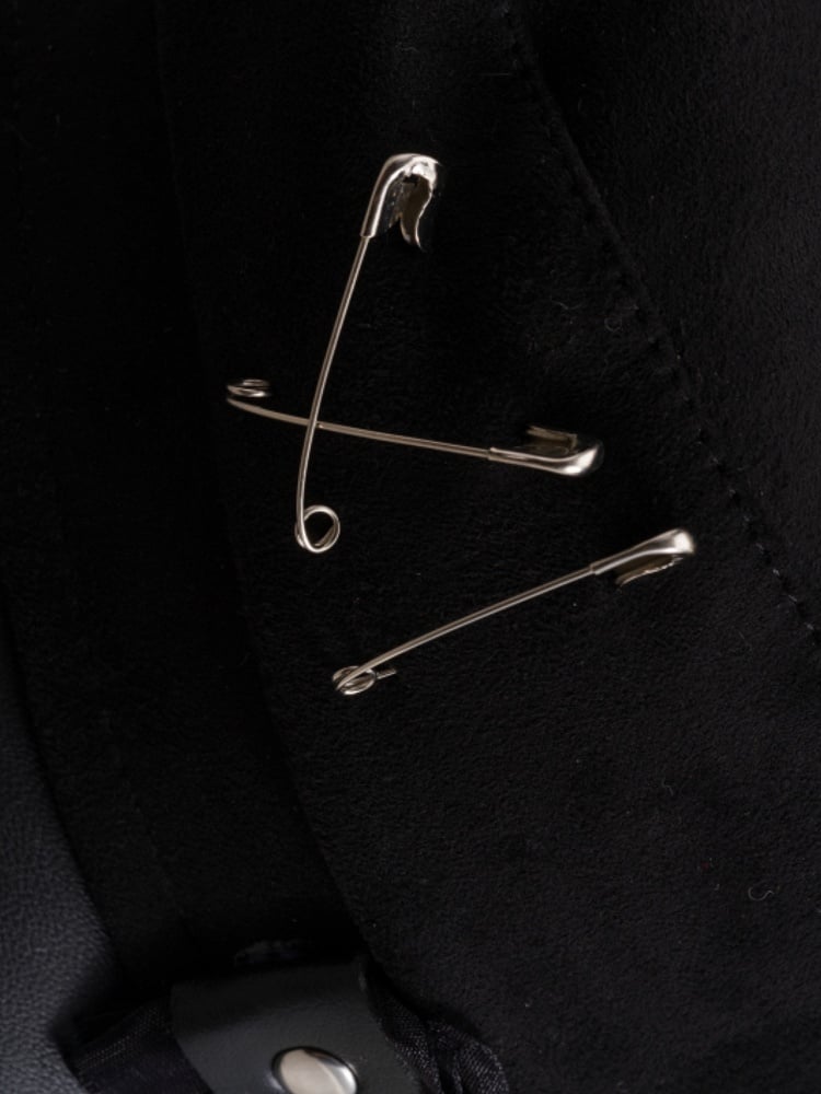 Black Gothic Pin Decorated Ruffled Trim Beret Hat