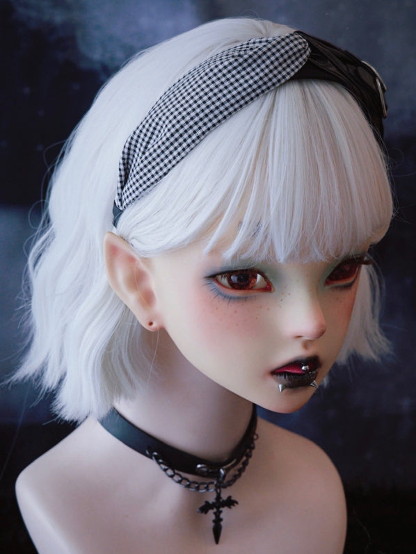 Black Gothic Plaid Pattern With Double Heart Buckles Decorated KC