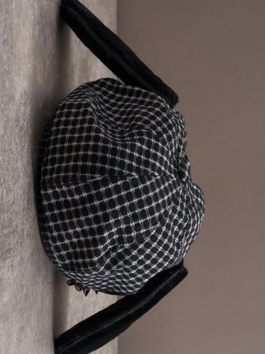 Black Gothic Studs Decorated Buckle Design Plush Puppy Ear Beret Hat
