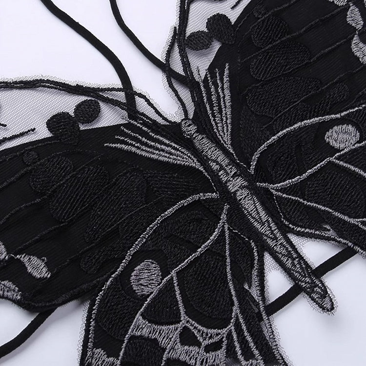 Black Halter Neck Butterfly Design Cami Top Ashnikko Concert Outfits
