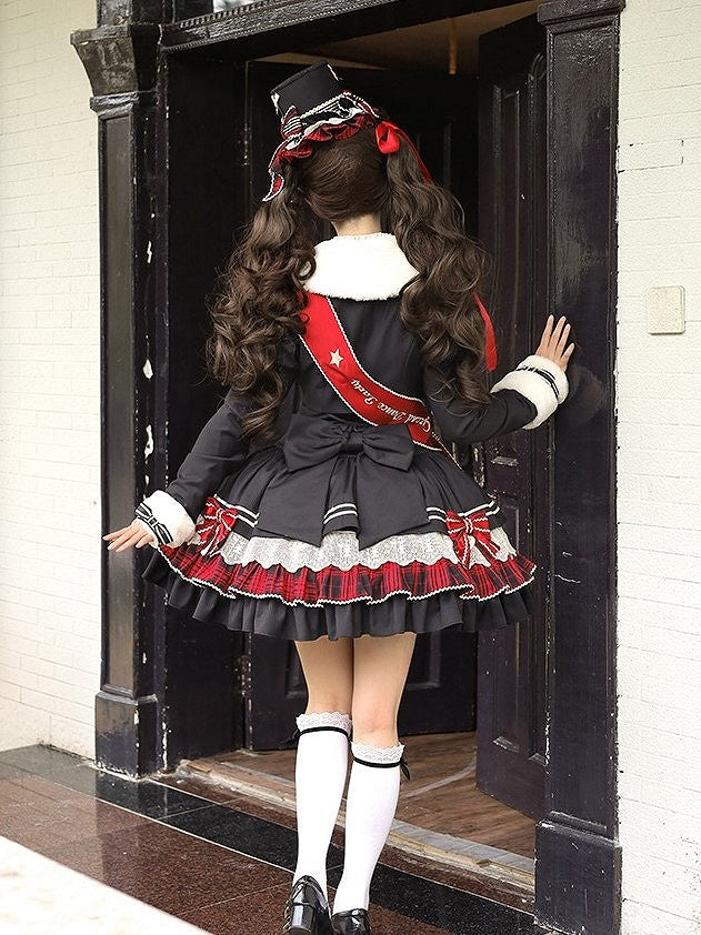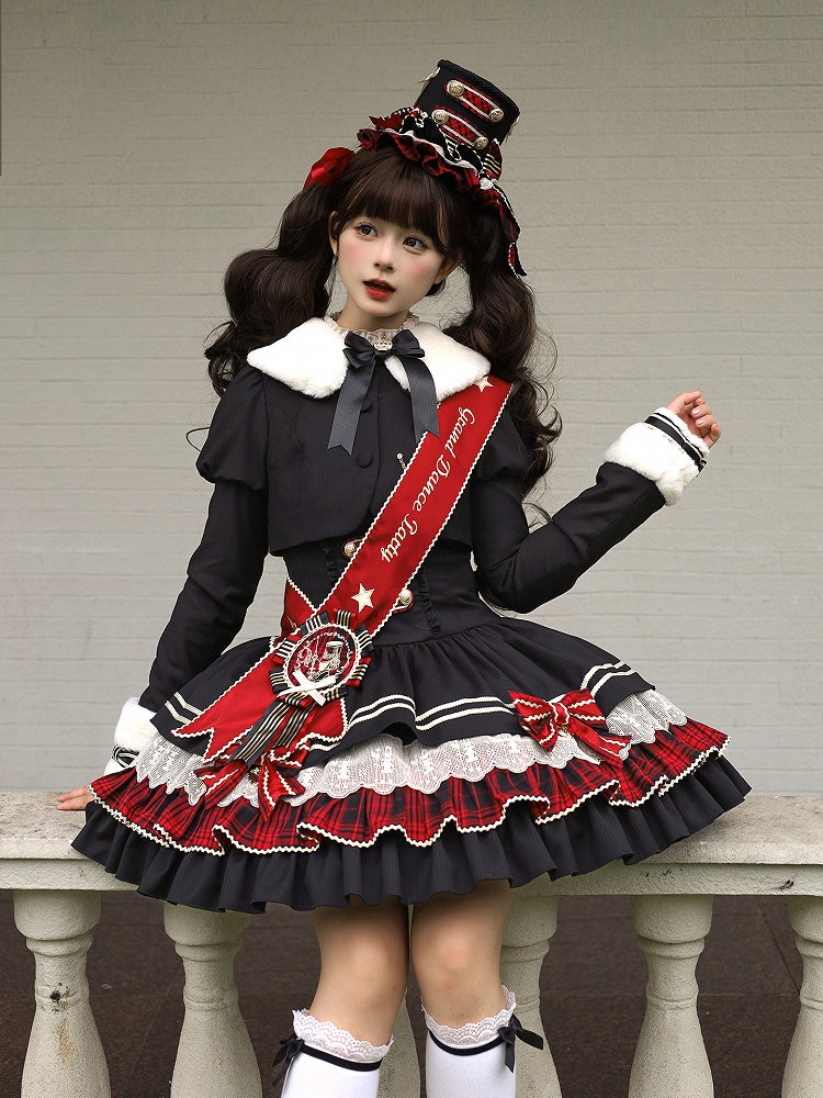 This exquisite piece features black striped pattern fabric, complemented by white faux fur on the collar and cuffs. Ideal for adding a touch of sophistication to any Lolita ensemble, this coat promises both style and warmth.