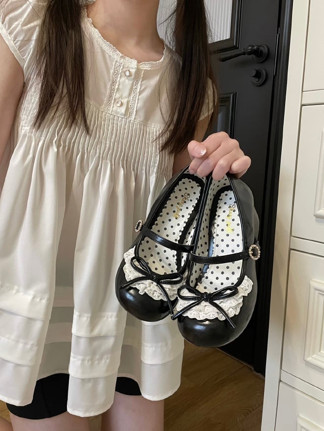 Step into the enchanting world of Lolita fashion with these sweet low-heel/middle-heel Mary Janes. Adorned with a charming knotted bow, these shoes are the epitome of delicate elegance. The intricate lace trim adds a touch of vintage allure, perfect for completing any Lolita ensemble. Whether you're attending a tea party or simply embracing everyday whimsy, these shoes offer comfort and style in every step.