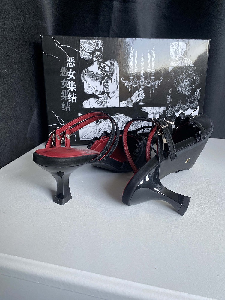 Black Lace-up Detail Pointed Toe Gothic Slingback Sandals