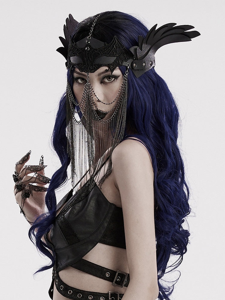 2. Stacked with bat-shaped lace in the front, embellished with black gemstone spikes.