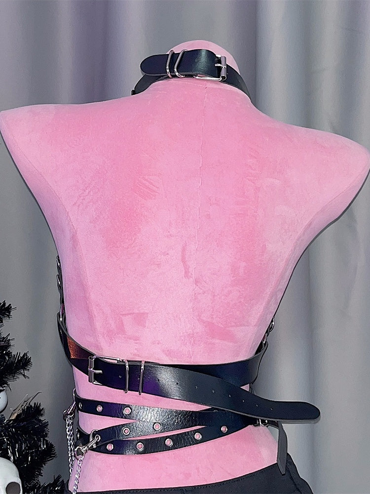 Black Punk Studs Details PU Chest Chain