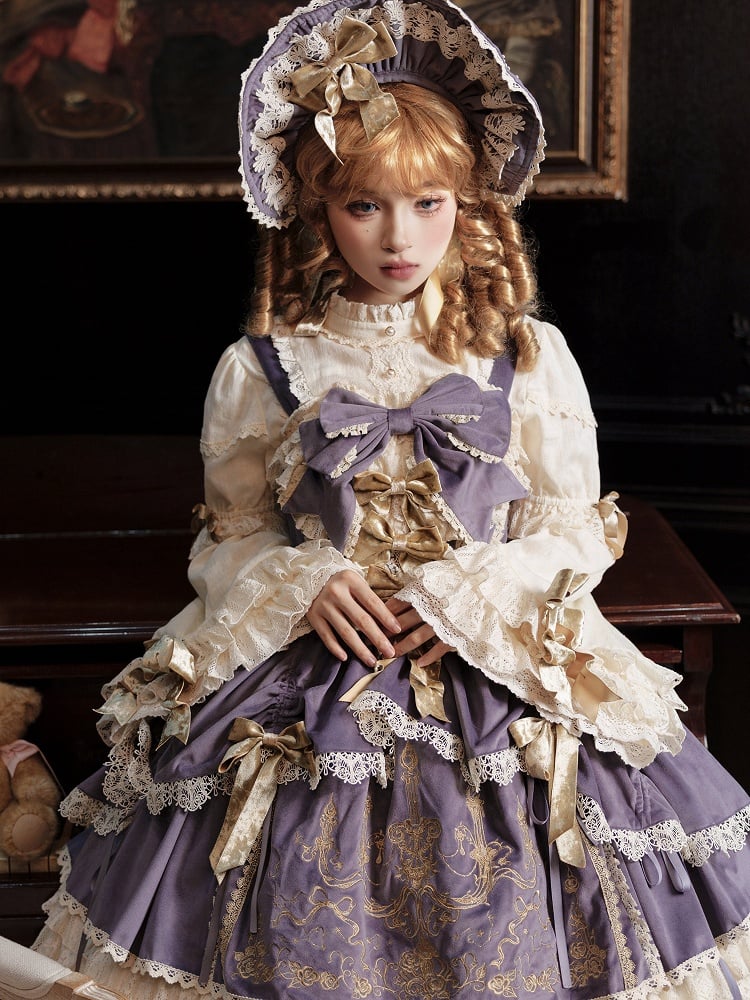 Black / Red / Pink / Gold Bows Decorated Beige Long Sleeves Blouse
