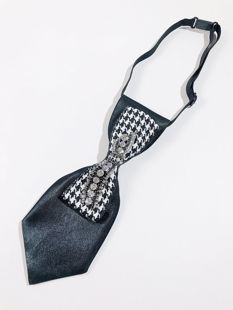 Black Rhinestone Decorated Houndstooth Pattern Bowknot Design Neck Tie