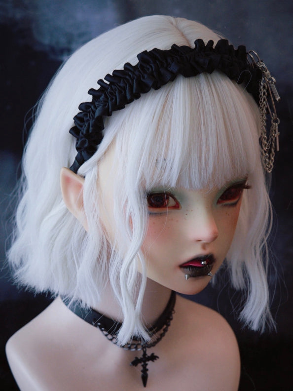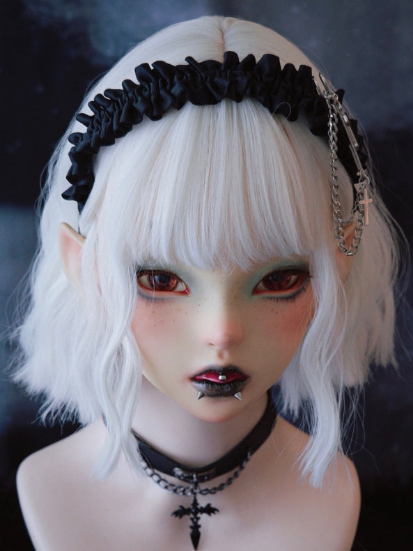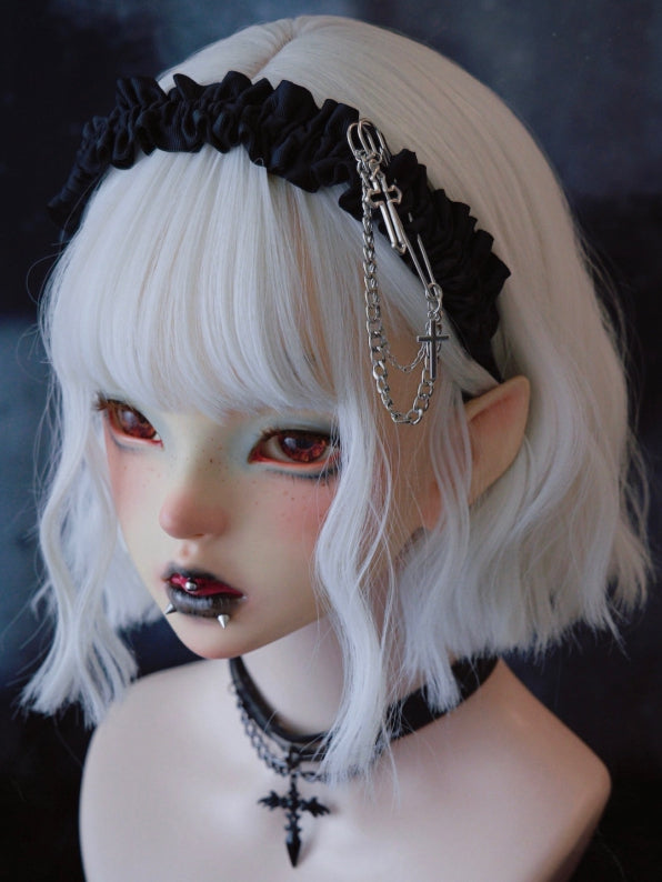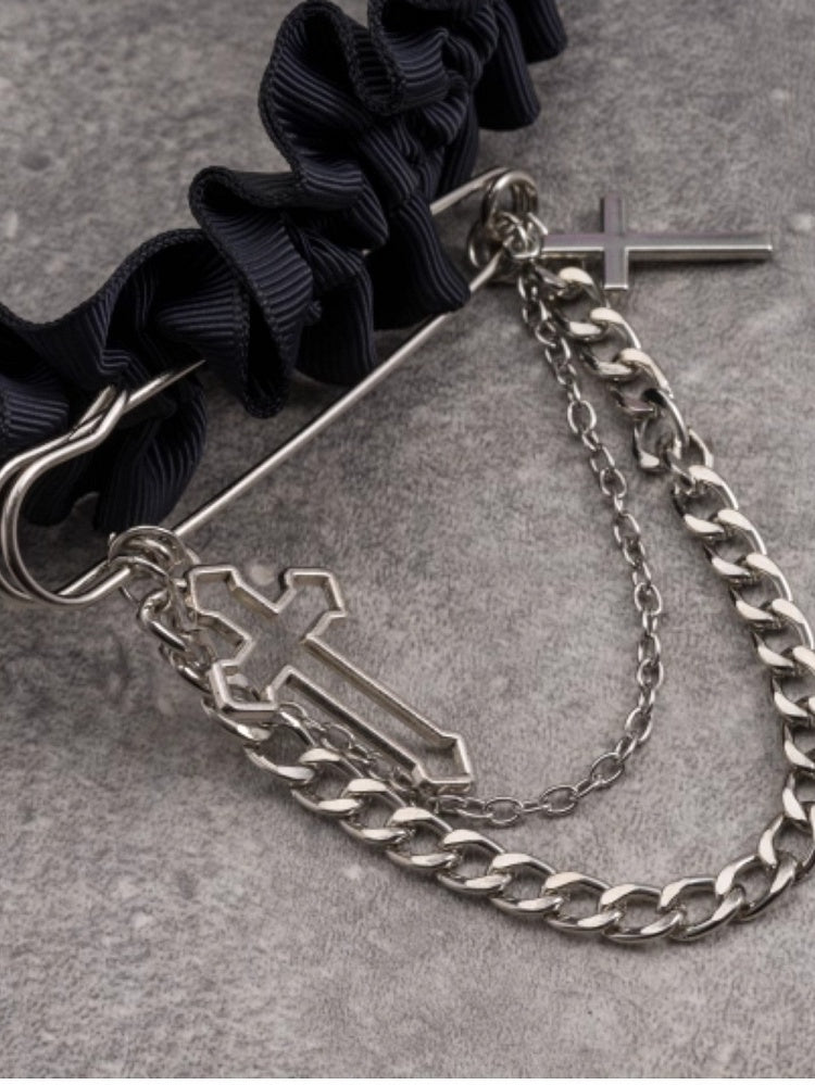 Black Ruffle Trim Decorated Pin With Cross Design KC