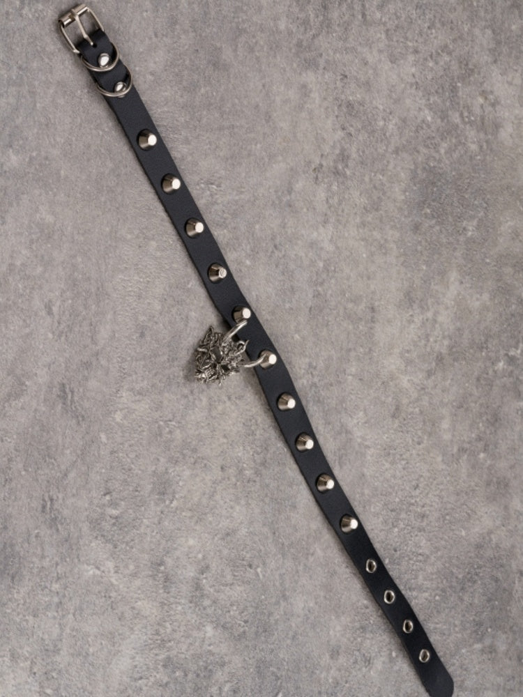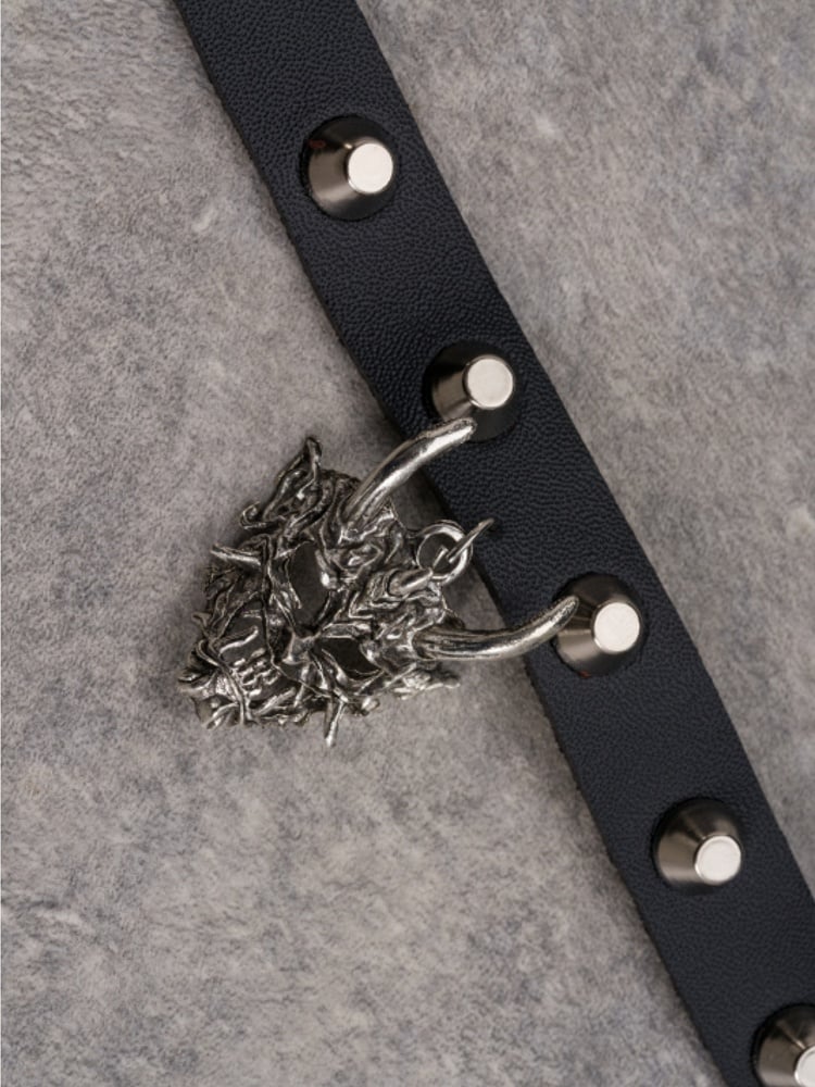Black&Silver Gothic Demon Mask Pendant Studs Design Buckle Choker