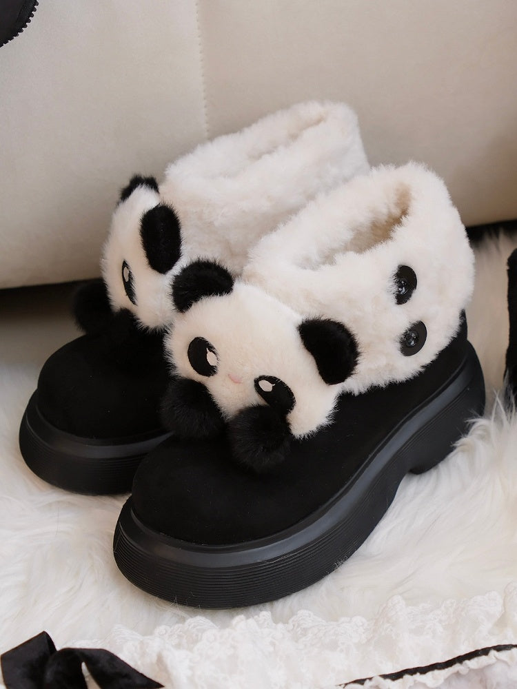 Black Sweet Lolita Platform Snow Boots - Panda Design with Plush Cuff